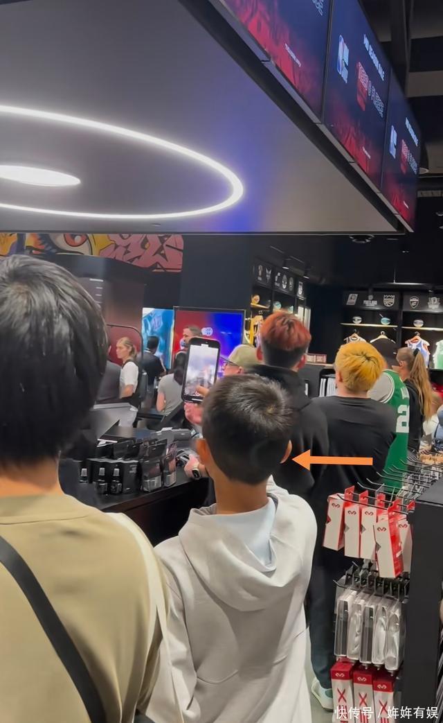 据网友分享的视频,Jasper一身休闲打扮,白色上衣搭配灰色外套和卡其色裤子,他穿梭在人潮挤挤的店铺里,左看右看,还遇到了一个篮球明星,然后用手机拍下来。