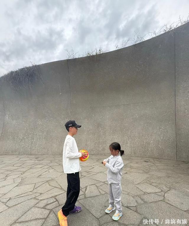 他还分享了一张照片。照片里,天空上布满了乌云,在一堵高墙下,大儿子Jasper和小儿子HOHO在旁边玩耍。其中,Jasper头戴一顶黑色帽子,身穿一件白色长袖上衣,下搭束脚运动裤,脚上的一双鞋是两种不同的颜色,左脚是紫色的,右脚是橙色的。他手里拿着一个足球,一脸笑容。HOHO扎着头发,有些许碎发散落在脸颊上,白色上衣搭配灰色外套和裤子,脚穿一双运动鞋。他正在弄着自己的手。 这么看,兄弟俩长得好像,跟爸爸一个模子出来的。值得注意的是,12岁的Jasper长好高了,成了一个帅气少年,不再是大家印象中的那个软萌小男孩。