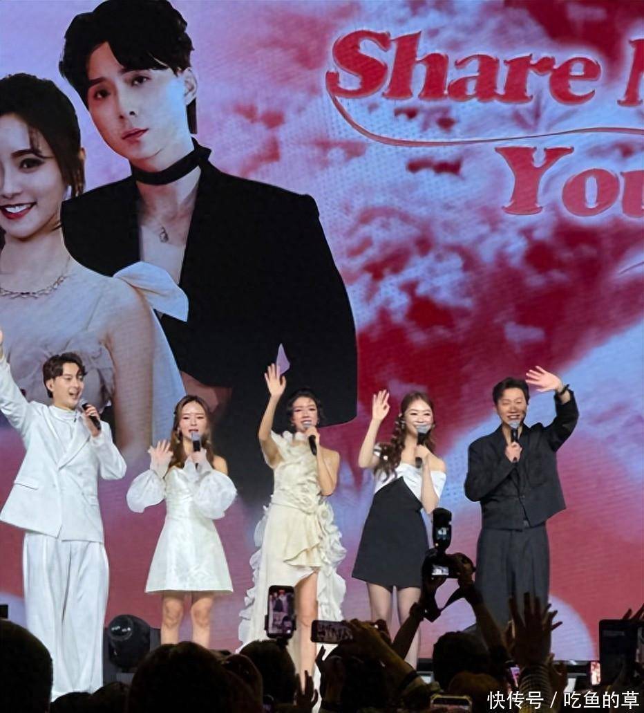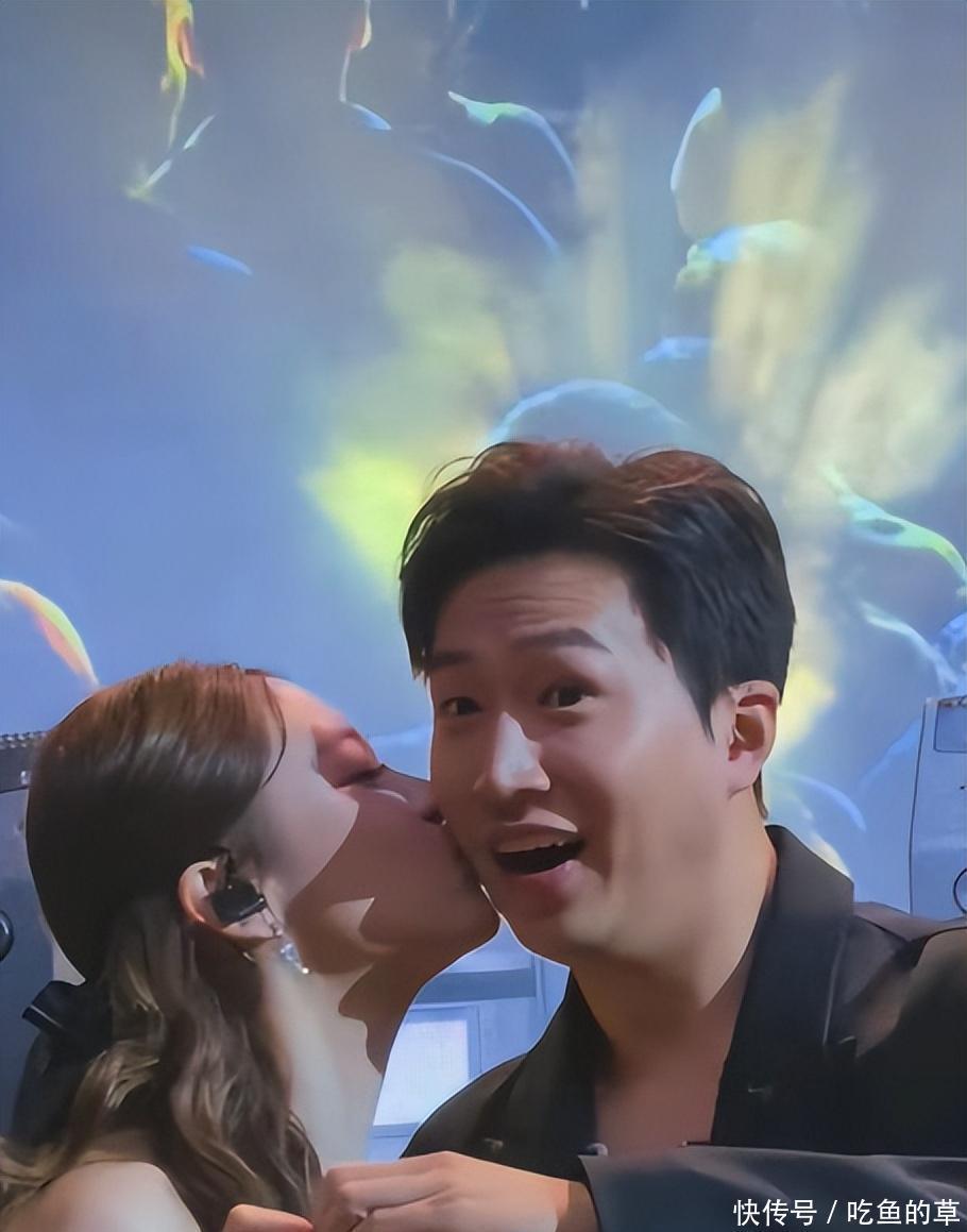 先说台上。这对情侣在广州举行《Share Me Your Love》音乐会,唱到动情处,加上台下粉丝起哄叫"亲一个",两人也是相当配合,当场来了一个深情的"咀嘴"。